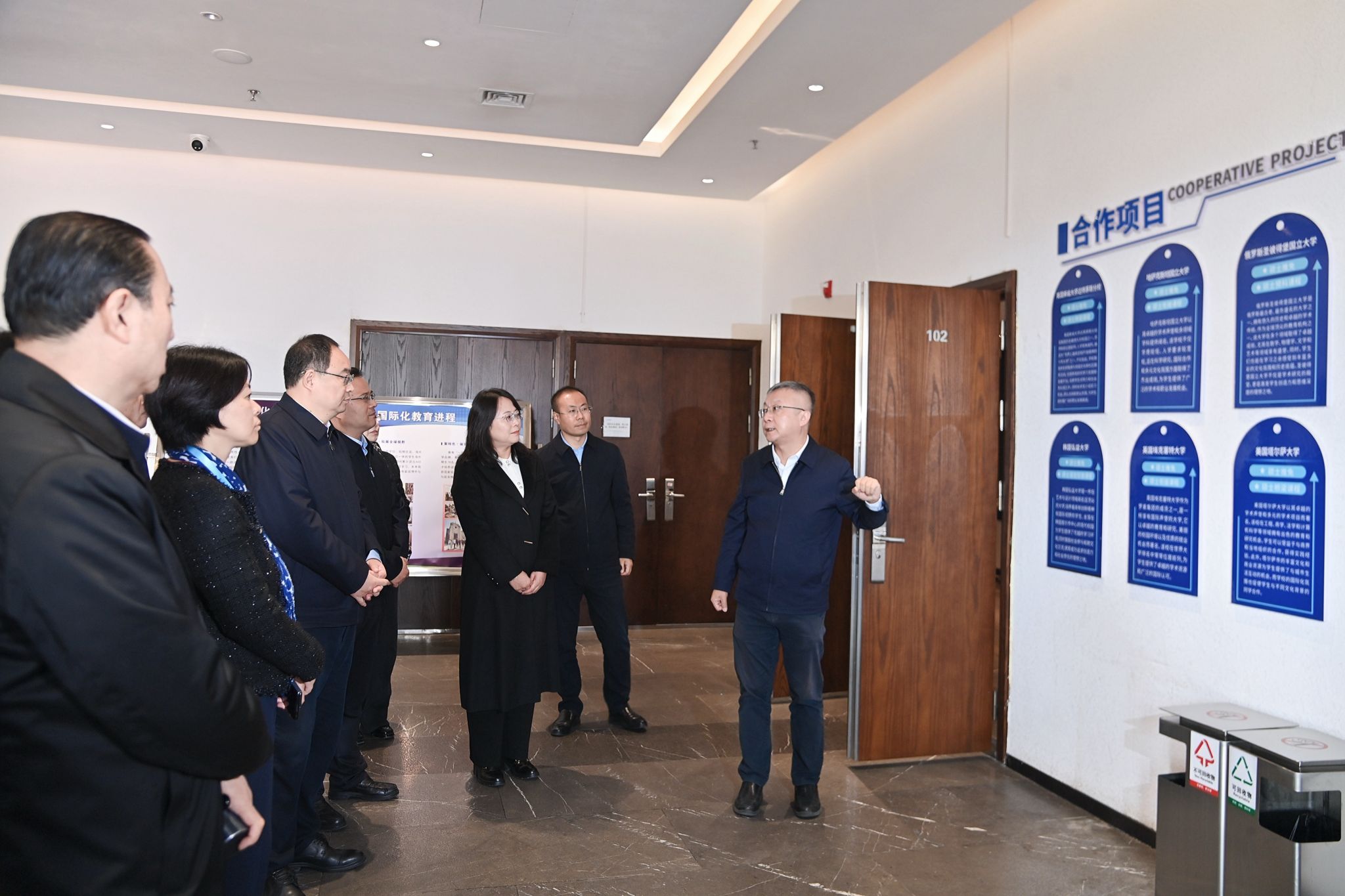 任友群一行参观了校史陈列馆,考察了秦创原(ALLWINCITY万象城)创新促进中心、汉字研究中心,并就校地融合发展、教育国际化、语言文字研究等相关工作进行了现场交流。