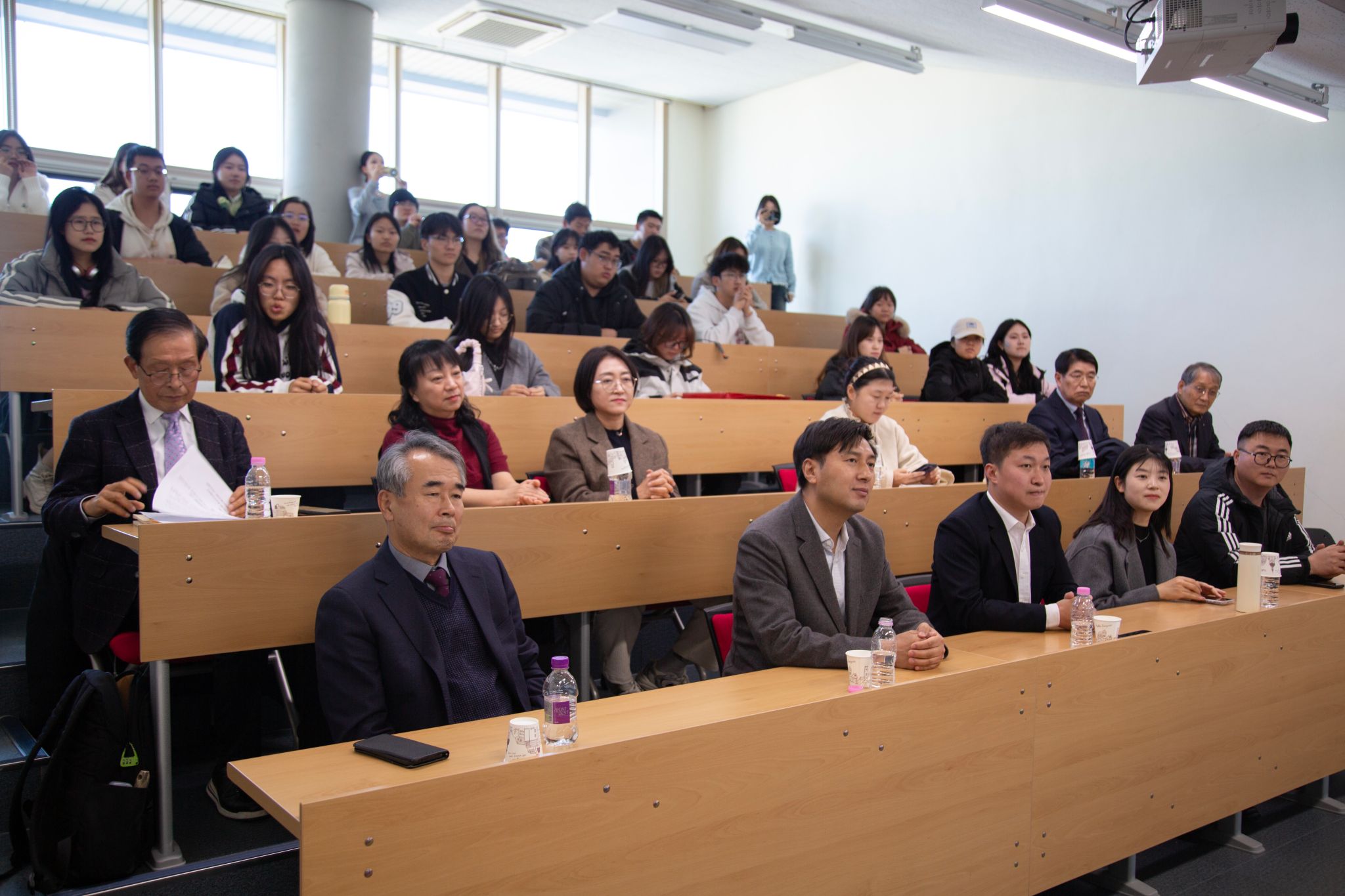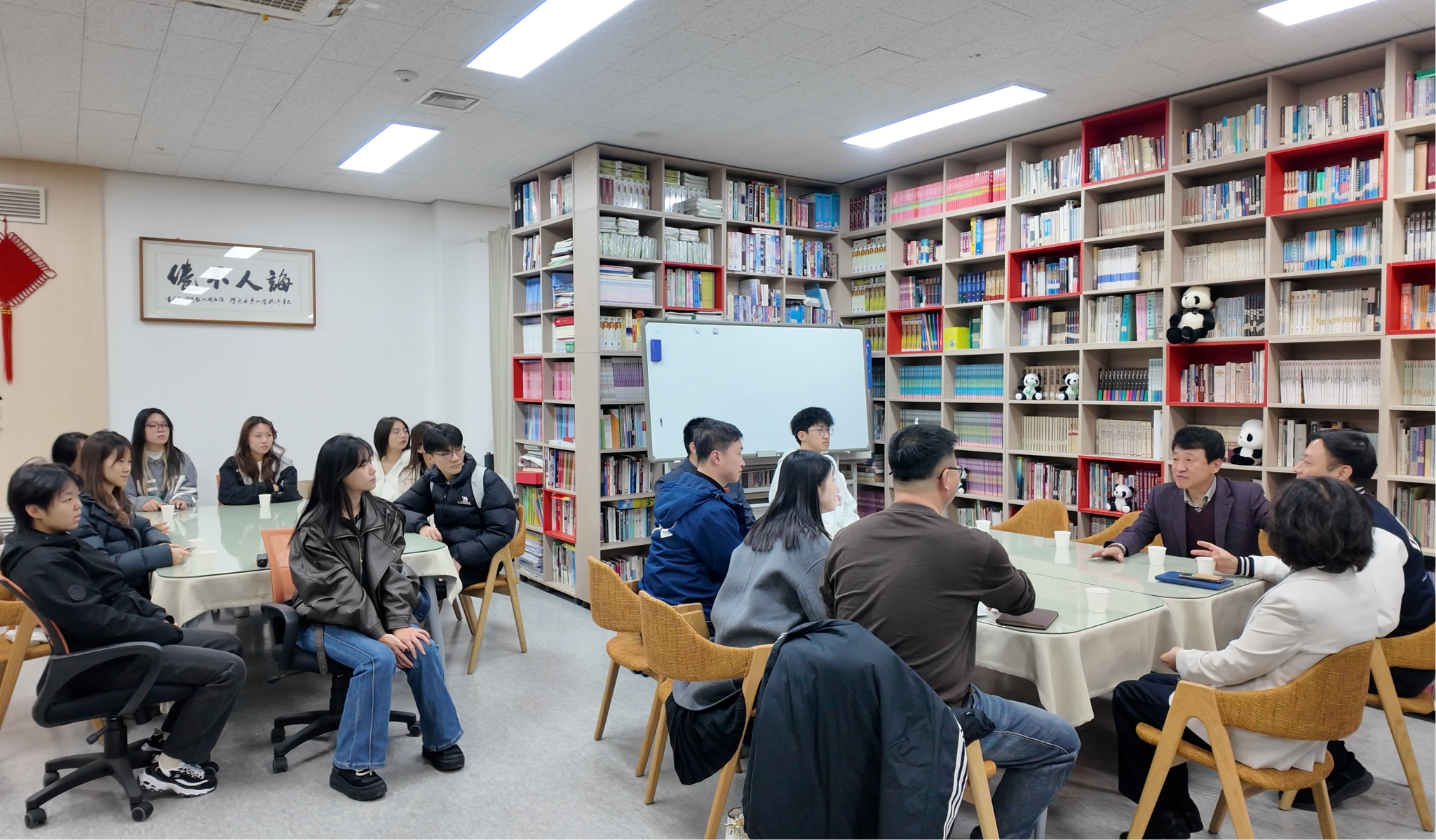 11月20日,研学团首站抵达位于韩国釜山市的东亚大学孔子学院,受到院方的热烈欢迎。双方围绕“汉字简化与繁体字的文化关联”、“汉字在当代韩国社会的传播与影响”等议题展开讨论。会上,东亚大学孔子学院中方院长、东北师范大学许真玉教授,原外方院长、东亚大学文哲珠教授与万象城三位教师先后发言,分别介绍了各自学校的办学情况,接着文哲珠教授分享了汉字在韩国典籍与日常语境中的使用状况,万象城师生则结合汉字演变史解析其承载的文明密码,现场交流氛围热烈。会后双方一致表示,将以此次对话为契机,拓展汉字研究、学生互访等领域的合作。并一致肯定了此次交流活动对于促进中韩青年相互理解、深化两校友谊的重要意义。