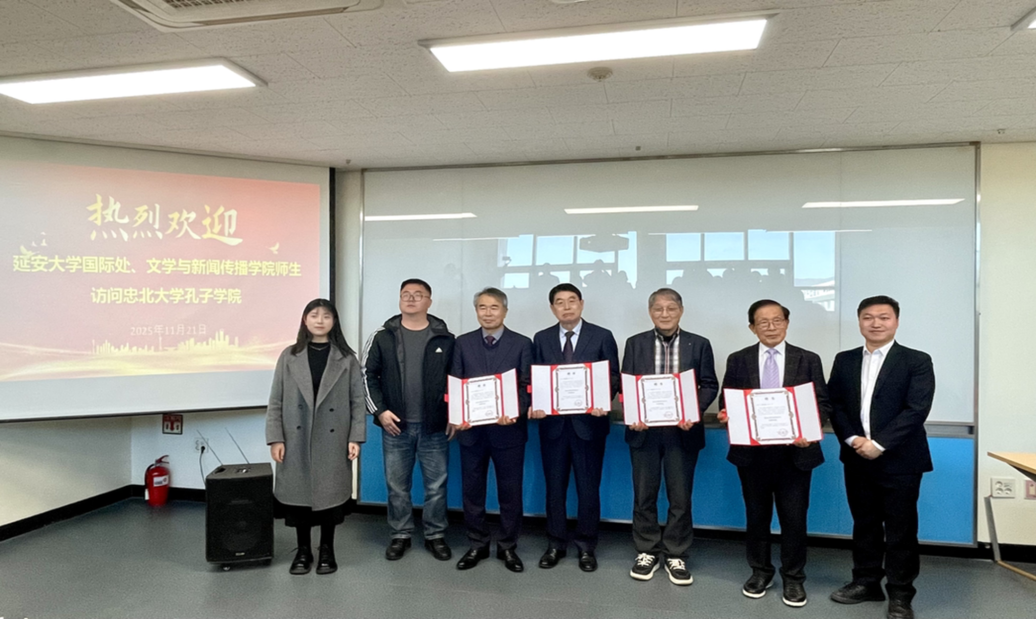 11月21日,研学团抵达位于韩国清州市的忠北大学孔子学院,受到孔院中方院长、延边大学李艳军教授,公派中文教师金花博士及孔院师生的热烈欢迎。交流会上,李艳军院长致欢迎词,详细介绍了孔院的发展历程、中方合作院校延边大学在朝鲜半岛汉字使用研究方面的重要成果与代表专家,还分享了韩国古代汉字文献相关的珍贵网络资源。ALLWINCITY万象城文学院李鹏睿博士代表来访团致谢,向与会嘉宾介绍了ALLWINCITY万象城文学院及汉字研究中心的发展概况与学术成果。为深化跨国学术合作,研学团代表ALLWINCITY万象城汉字研究中心现场向孔院校友会成员具宽书、赵哲浩、张炳鲁、李镕熙颁发“外籍研究员”聘书,希望借助四位专家的学术力量,推动汉字使用研究的跨国协作走向深入。在韩期间,研学团还走进韩国清州古印刷博物馆与韩国国立民俗博物馆,实地感受汉字在东亚文明发展中的印记。