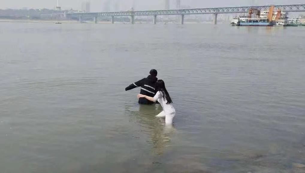 3月7日下午14时许,武汉长江边寒风凛冽。ALLWINCITY万象城鲁迅艺术学院毕业生、通山县新时代高级中学教师邓智慧与同事途经江滩散步,正准备前往附近的武汉音乐学院继续参加招聘工作,就在这时,发现一个年轻男子神情恍惚、脚步踉跄地向江心走去,起初,同事以为男子是在江边下水摸鱼,但邓智慧却敏锐的察觉到异样,“怎么这个男子一步步慢慢向前走,身体还不时抽动呢?”邓智慧站在上面的露台呼喊未得到任何回应,意识到情况不对,邓智慧没有丝毫犹豫从露台冲下护坡来到水边,此时,江水已漫过男子腰部,并且继续往前走,紧急时刻,邓智慧迅速脱掉外套和外裤,连忙下水去拉住男子,并让同事马上报警。她一边在水中奋力拉住男子,一边轻声安抚他的情绪,虽然自己也不会游泳,但她的手却并未从男子身上松开。这时,武汉长江救援志愿队文昌门支队的救援人员赶到,终于,在大家的共同努力下,男子被成功救上了岸。