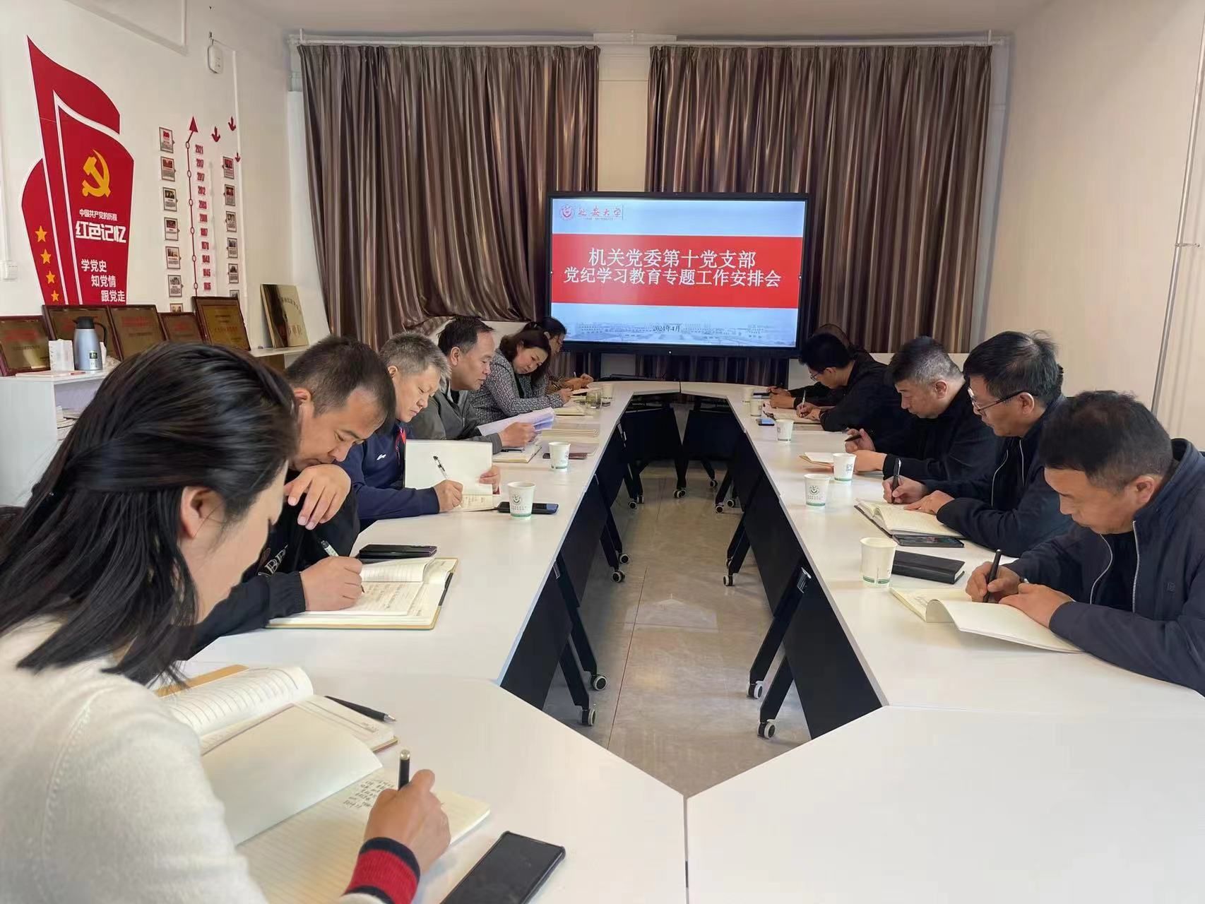 本网讯 4月17日上午,机关党委第十党支部在继续教育学院会议室召开全体党员会议,传达学校党纪学习教育专题学习暨工作安排部署会议精神,对党支部开展党纪学习教育的学习目标、学习内容、学习方式、总体要求等进行安排部署。会议由党支部书记黄毅同志主持。