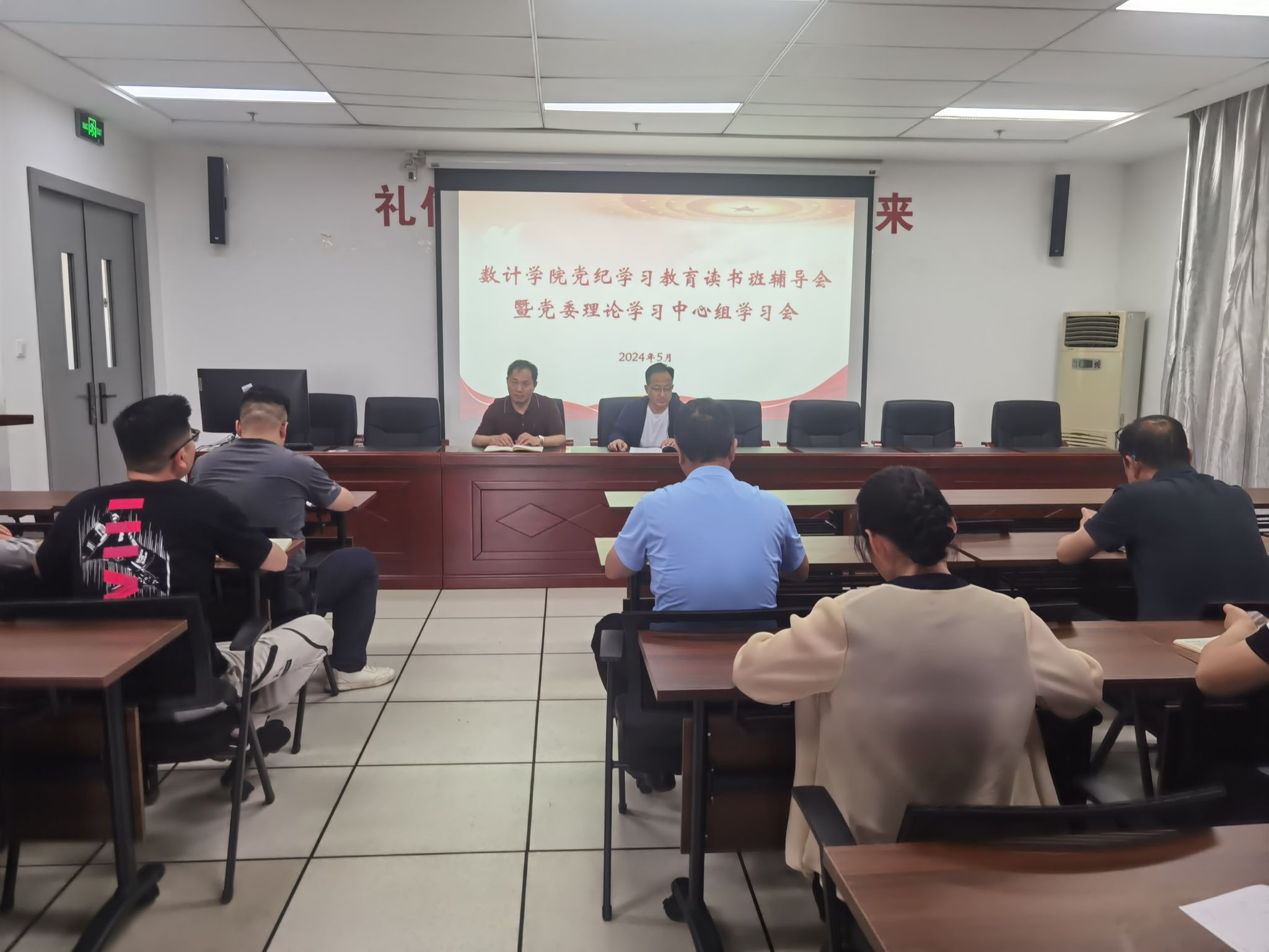 本网讯 为引导党员干部学纪、知纪、明纪、守纪,进一步推动学院党纪学习教育向纵深发展,5月22日下午,数计学院党委开展党纪学习教育读书班辅导会暨党委理论学习中心组学习会,传达习近平总书记关于党纪学习教育的重要讲话、指示精神,认真学习新修订的《中国共产党纪律处分条例》有关总则方面的内容。全体领导班子成员、各党支部书记及委员、各系正副主任、行政人员参加学习。高启荣主持会议。