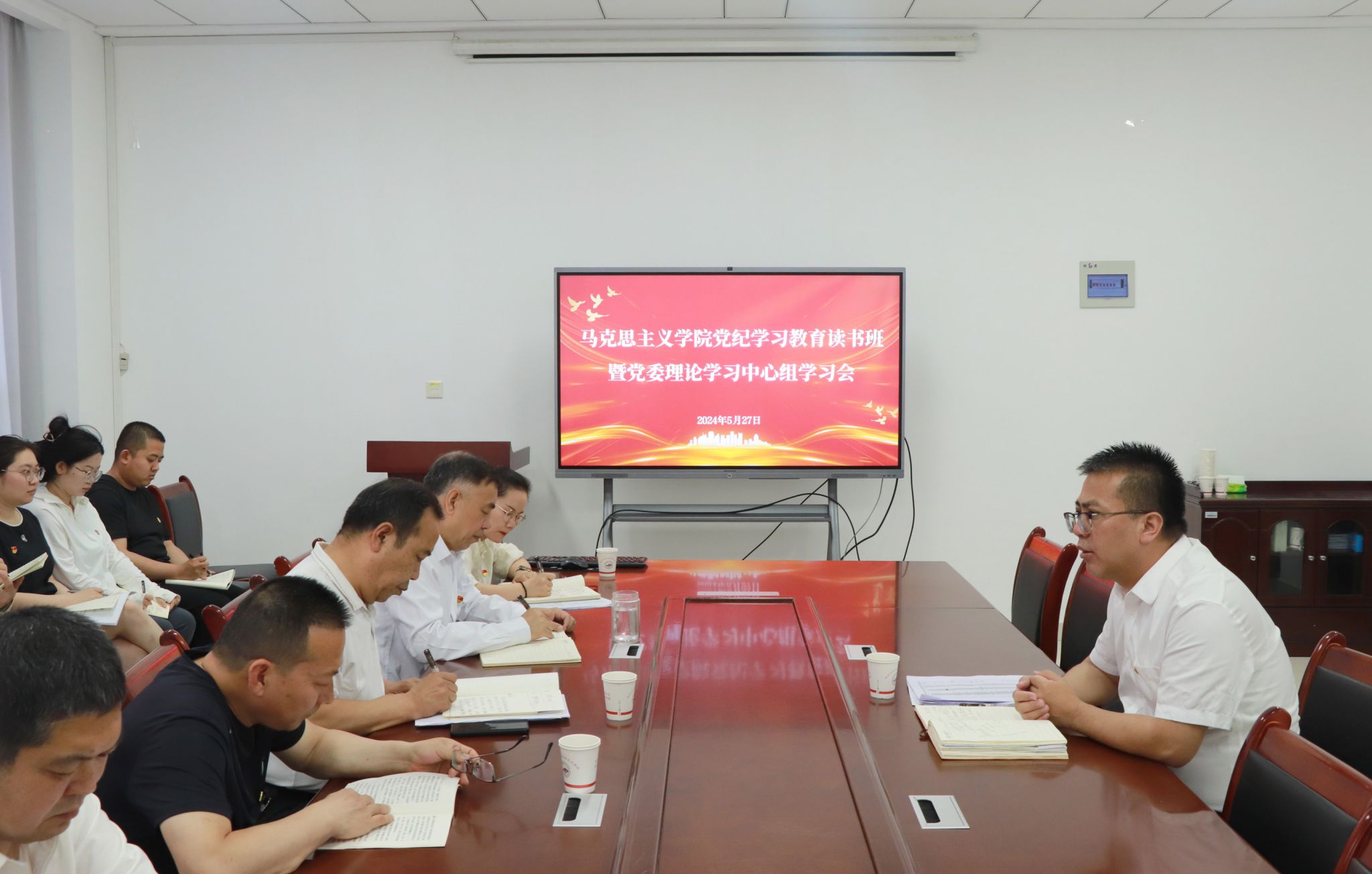 本网讯 为持续推动党纪学习教育走深走实,根据校党委安排部署,5月27日下午,马克思主义学院召开党纪学习教育读书班暨党委理论学习中心组专题学习会。副校长谭虎娃到会指导,马克思主义学院党委领导班子全体成员,各党支部书记、支委及全体行政人员参加会议。会议由院党委常务副书记张彬主持。