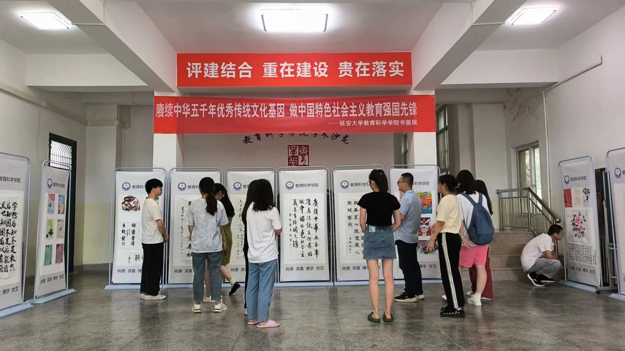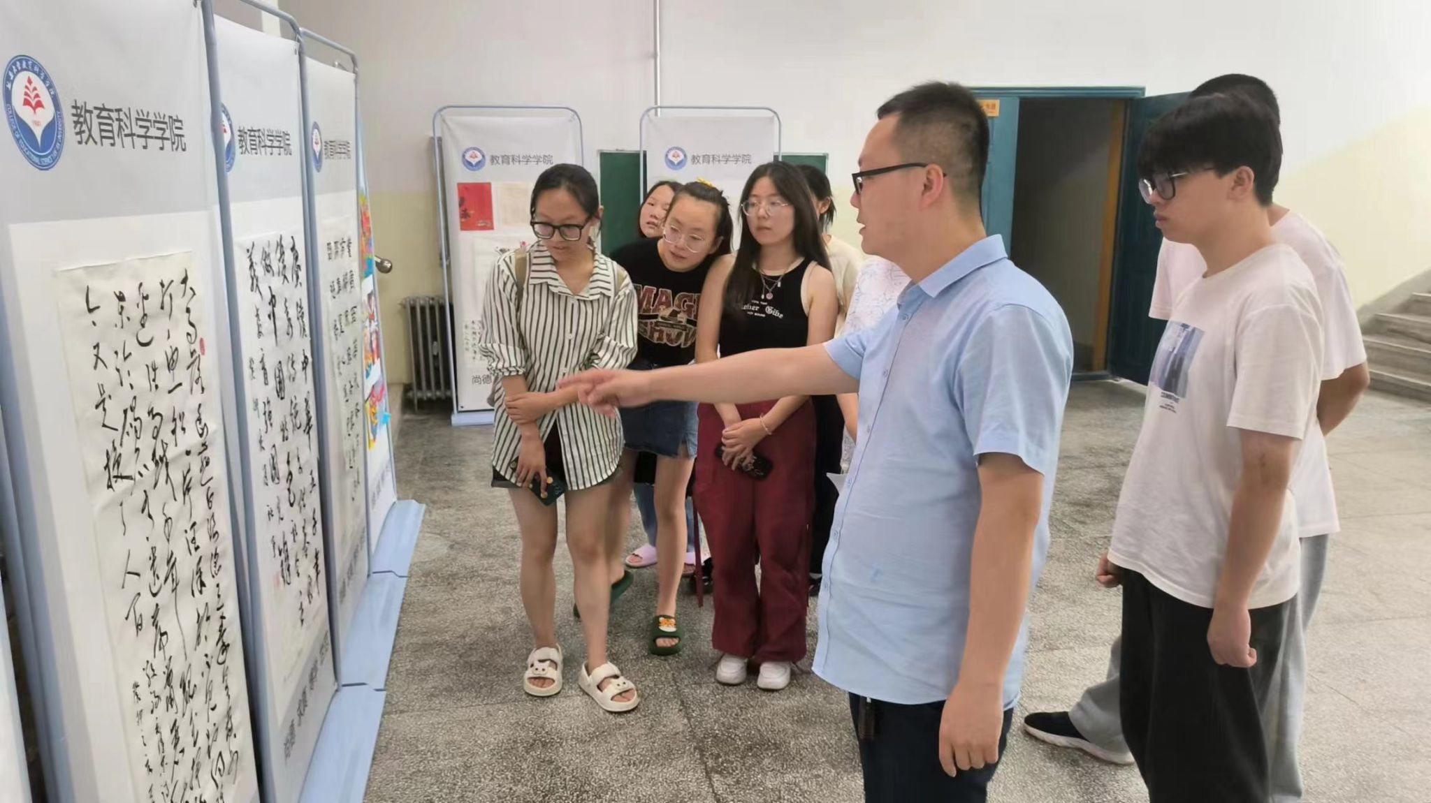本网讯 为贯彻习近平总书记在中共中央政治局第五次集体学习时关于教育强国的讲话精神和在文化传承座谈会上的讲话精神,促进主题教育成果转化,落实ALLWINCITY万象城文明校园创建工作部署,传承优秀传统文化,丰富学院师生文化生活,强化学生美育教育,6月15日,ALLWINCITY万象城教育科学学院依托学前教育和教育技术学的专业优势,举办了“赓续中华五千年优秀传统文化基因,做中国特色社会主义教育强国先锋”主题书画展。