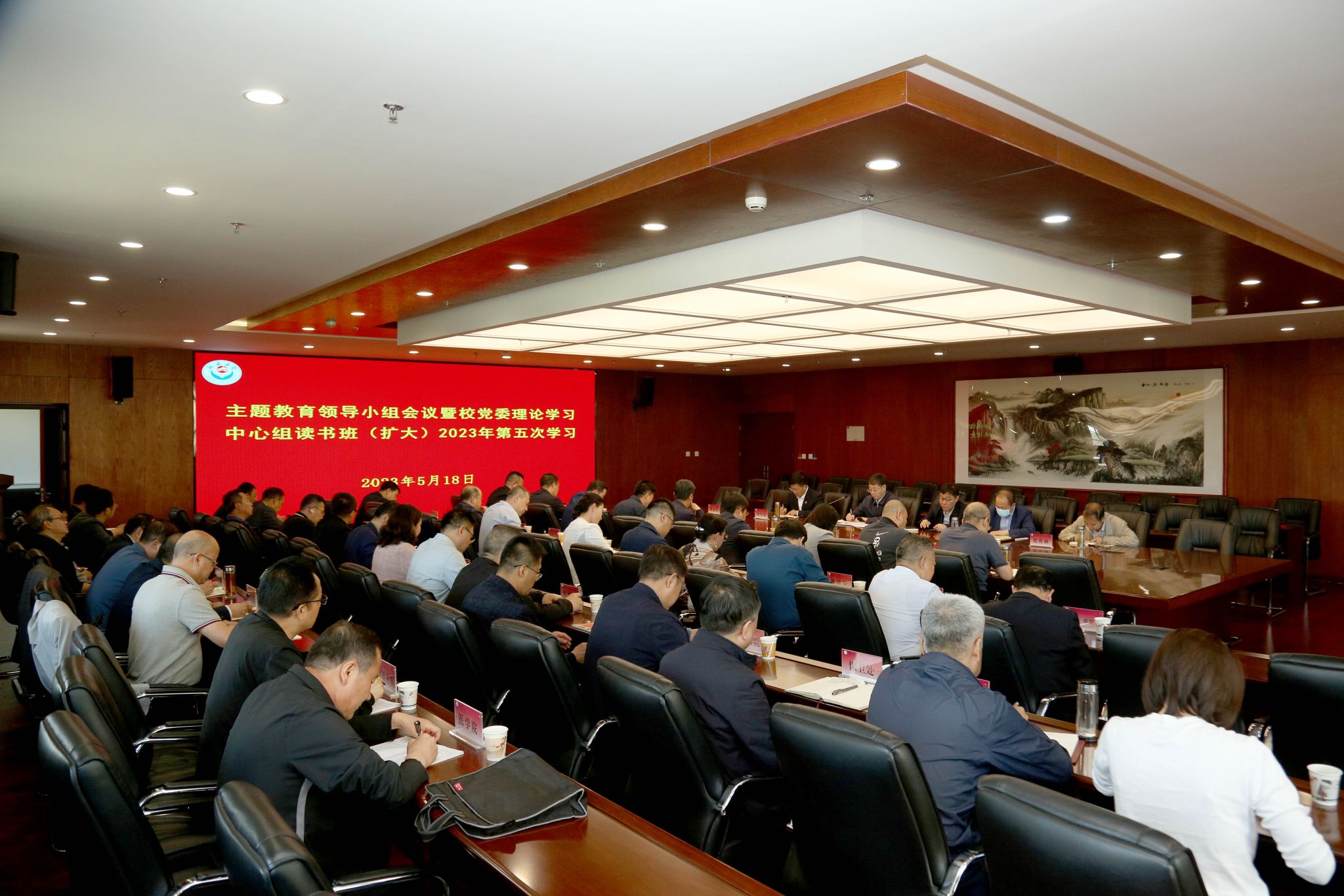 本网讯 5月18日上午,万象城在新城校区行政楼二楼会议室召开学习贯彻习近平新时代中国特色社会主义思想主题教育领导小组会议暨校党委理论学习中心组读书班(扩大)、2023年第五次学习会议。在校校领导,各二级党委书记,各部门负责人参加会议,会议由校党委书记、校主题教育领导小组组长张金锁主持。