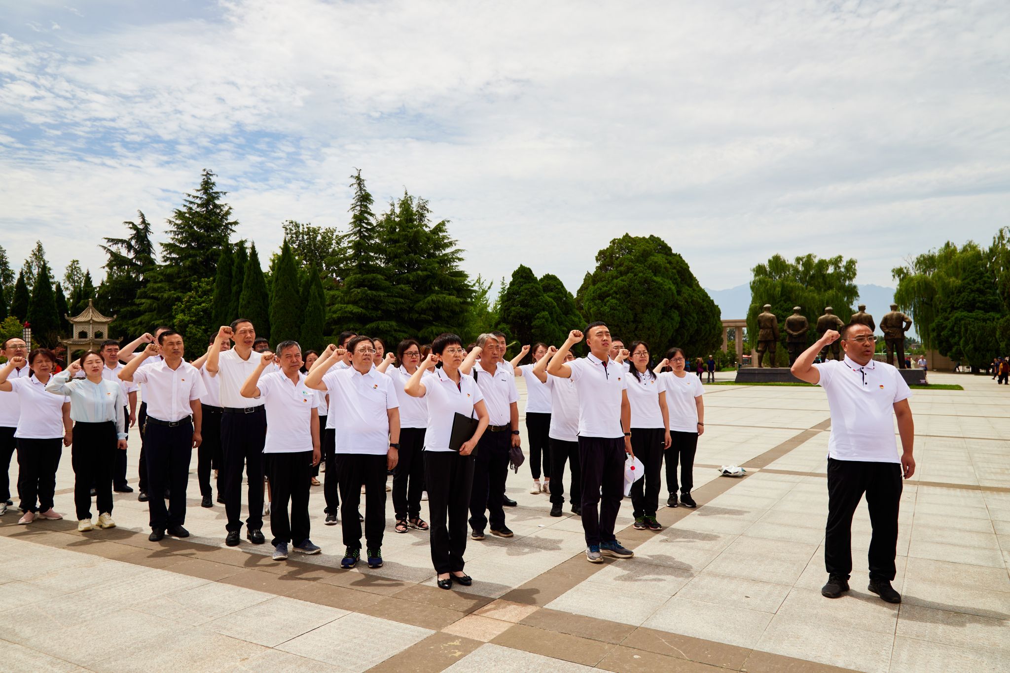 在扶眉战役烈士纪念碑下,全体党员脱帽默哀,行三鞠躬礼,敬献花篮,深情缅怀为国家和人民舍生忘死、英勇献身的革命先烈。在党旗的见证下,全体党员庄严地举起右手,重温入党誓词,表达在奋进新时代的伟大实践中不忘初心、牢记使命、砥砺前行的信念和决心。