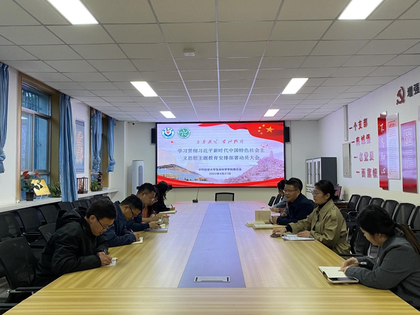 本网讯 4月21日下午,生科院在学院会议室召开了学习贯彻习近平新时代中国特色社会主义思想主题教育动员会。学院科级以上干部、党支部书记、全体辅导员参加了会议。会议由院党委副书记、院长张向前主持。
