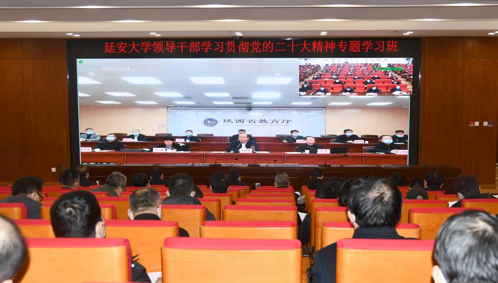 刘建林强调,学习宣传贯彻党的二十大精神是当前和今后一个时期的首要政治任务,要准确把握、深刻理解党的二十大报告提出的一系列新思想、新观点、新论断,特别是要深刻领会教育是“国之大计、党之大计”等重大战略和“办好人民满意的教育”部署要求,切实把思想和认识统一到党的二十大精神上来,把智慧和力量凝聚到党的二十大对教育工作提出的各项目标和任务上来,加快建设教育强省,努力办好人民满意的教育。要在系统学习上下功夫,紧扣重要思想、重要观点,读原文、悟原理,深刻领会党的二十大报告的丰富内涵和习近平总书记在大会期间的系列重要讲话精神,更好运用党的二十大精神谋划未来发展、解决现实问题、推动实际工作。要在深刻把握上下功夫,全面把握习近平新时代中国特色社会主义思想的世界观、方法论,深刻领会“两个结合”“六个坚持”,坚持教育优先发展、科技自立自强、人才引领驱动,共同塑造全省经济发展的新动能新优势。要在全面落实上下功夫,把学习贯彻成效体现到全力做好教育工作的具体行动上,认真落实陕西省和学校教育事业发展“十四五”规划及全省教育工作会议提出的目标要求,统筹做好新学期教学管理、校园安全、疫情防控和传染病防治工作,确保新的一年开好局、起好步。