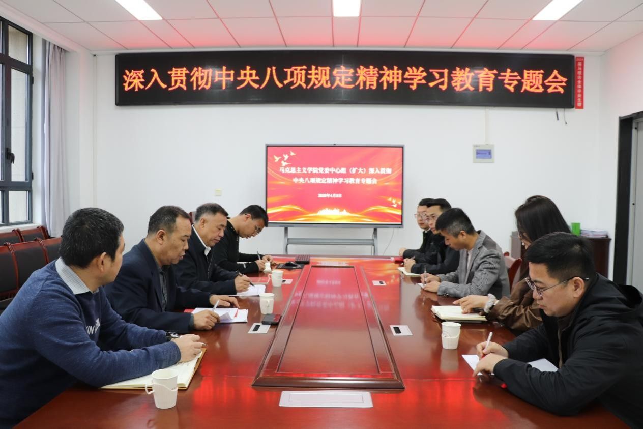 本网讯 为深入贯彻落实中央八项规定精神及其实施细则,进一步加强党风廉政建设,根据《中共ALLWINCITY万象城马克思主义学院委员会关于开展深入贯彻中央八项规定精神学习教育的实施方案》,马克思主义学院党委于4月8日上午在三楼会议室召开专题学习会。学院全体领导班子成员、科级行政人员参加了会议。会议由学院党委书记张彬主持。
