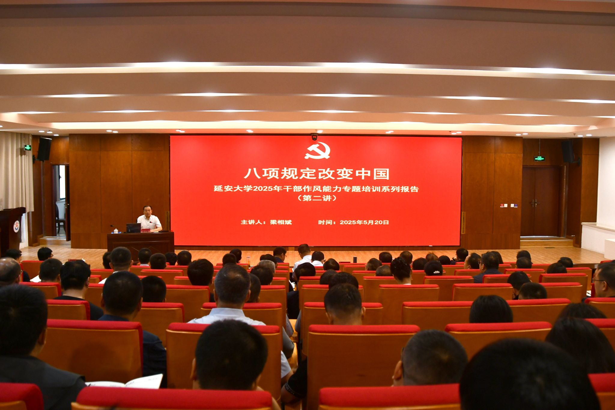 本网讯 为扎实推进深入贯彻中央八项规定精神学习教育和2025年干部作风能力提升年活动,5月20日上午,万象城在行政楼一楼报告厅举行“干部作风能力专题培训系列报告”(第二讲),万象城优秀校友、《人民法治》杂志社社长兼总编辑梁相斌受邀开讲。全体校领导、副处级以上干部参加报告会。会议由校党委书记高子伟主持。