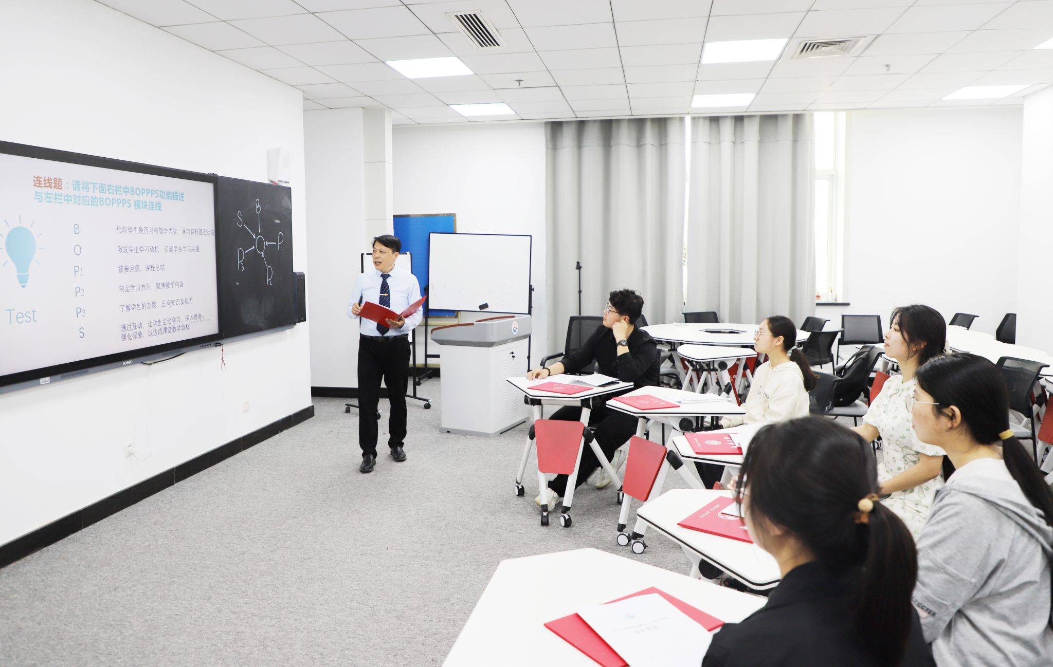线上项目用功,线下课堂项目的探索与提升更不能有丝毫放松。王璐从培养目标和内容上,改变了过去单一传授知识或培养普通能力的目标模式,将知识、能力、素质进行有机融合,通过教学实践活动,锻炼学生深度分析、大胆质疑、勇于创新的精神和能力;采用问题导向教学模式和多样化的教学活动,借助智慧教学工具支持学生的课前自主学习和课堂案例分析、合作探究、自评互评等活动,借助多媒体设备与资料构建情境,借助问卷星进行课后调研,引导学生成为学习的主人,使课堂活起来;将自主学习法、讲授法、演示法、讨论法、实验法、任务驱动法等教学方法有机融合,在内容层面扩大知识的深度和广度,实现跨专业能力融合创新课程体系,打破解剖专业框架,将专业知识、技能与健康知识和预防保健相结合。