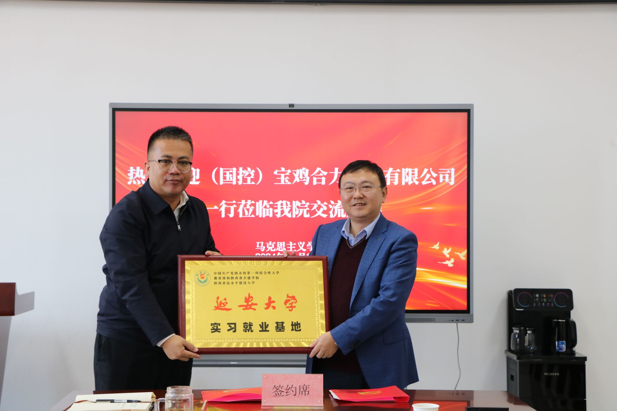 随即,双方签订了校企合作协议书,谭虎娃副校长代表学校授予了企业实习就业基地牌匾。